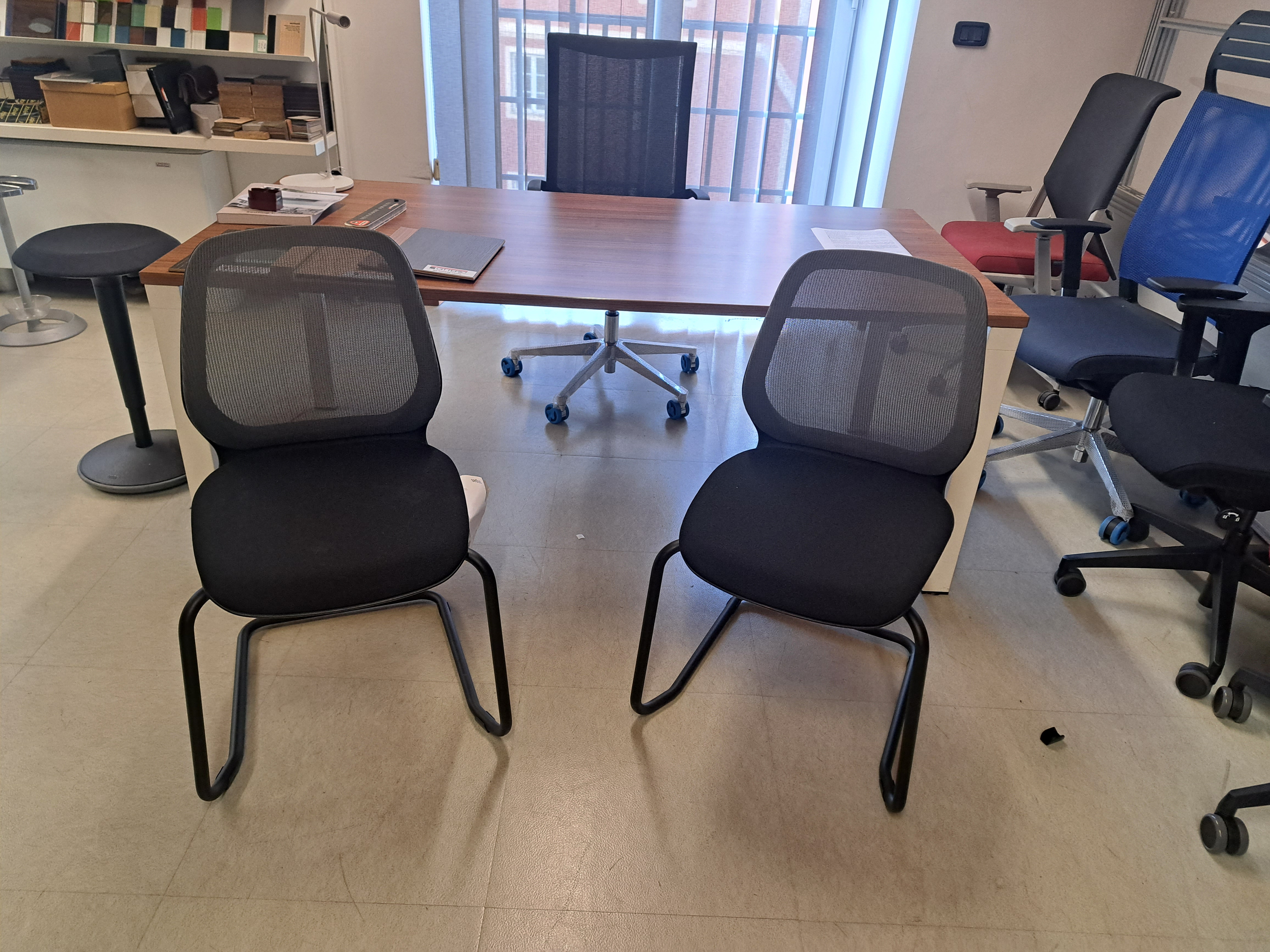 POLTRONCINE OSPITI CON BASE A SLITTA MODELLO Se:Do 17 ottobre 2023/in Senza categoria /da MaviSedia ospiti a slitta modello SeDo con schienale in rete e seduta imbottita e rivestita in tessuto nero ignifugo Prezzo per la coppia netto euro 400,00 + IVA 22%